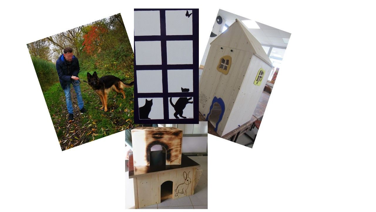 Nach einigen Überlegungen kamen wir auf die Idee, Nagerhäuser, Katzenhäuser und eine bemalte Tafel für das neue Katzenhaus zu bauen. Die Arbeit innerhalb der Mauern machte aber ebenfalls Spaß und Freude, nicht zuletzt weil es für den guten Zweck ist.