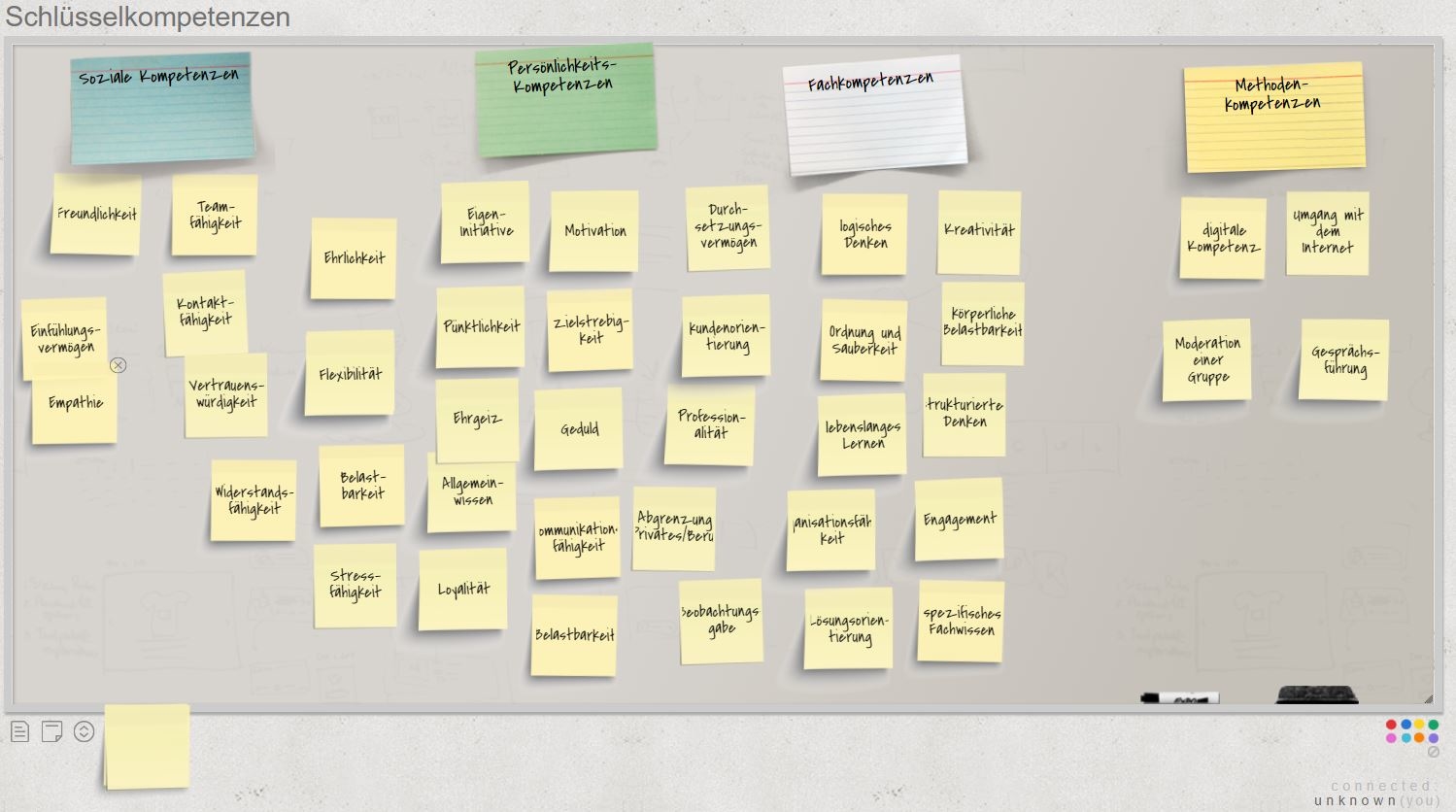 Während des Abends wurde zunächst deutlich, welch unterschiedliche Biografien die Teilnehmenden haben. Die Inhaftierten haben von ihren beruflichen Zielen berichtet. In gemeinsamer Arbeit wurde dann überlegt, welche Kompetenzen im beruflichen Kontext benötigt werden. Hierzu wurde eine Übersicht gefertigt. Abschließend reflektierten die alle Teilnehmenden wie es um ihre eigenen Kompetenzen bestellt ist. Hierzu füllten die teilnehmenden einen Selbsteinschätzungsbogen aus.