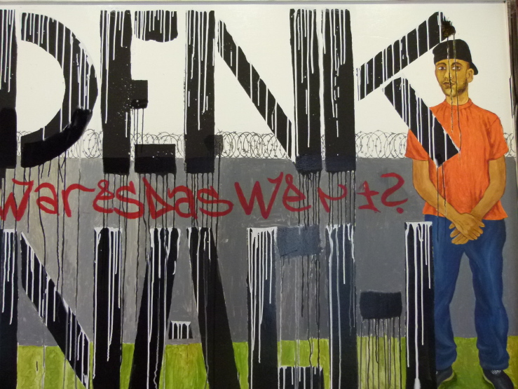 Die Idee stammte vom Insassen Christopher, der sich viele Gedanken macht. Deshalb auch der passende Titel: „Denk nach“. Das Bild entstand Ende 2013 auf einer